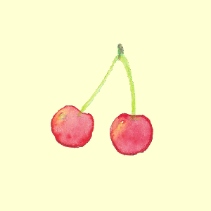 ●さくらんぼ(背景あり, PNGファイル, 300 × 300pxサイズ)