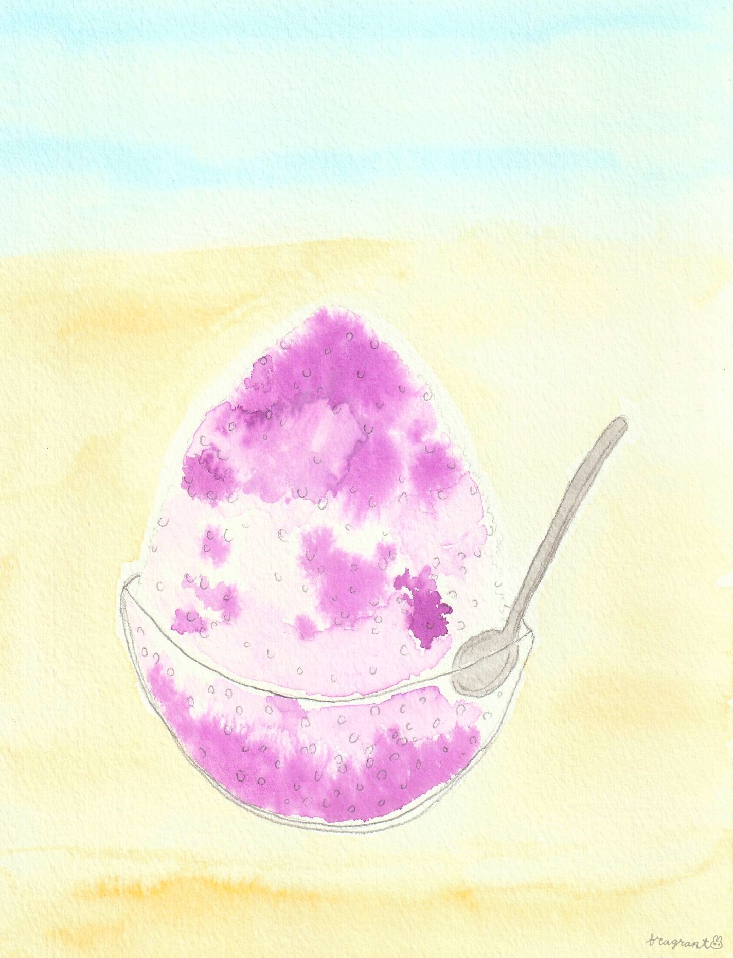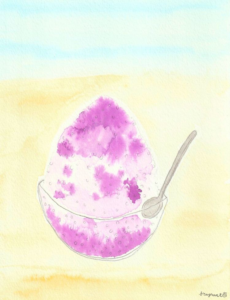 紫色のシロップは、ぶどう味かな?それともブルーベリー?紫芋かな?
