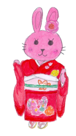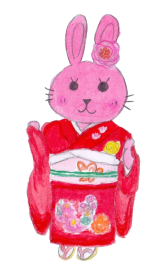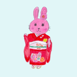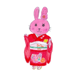 うさぎの女の子「しゃるろっと」が、おめでたい日に、華やかな和の装いをしています🐰