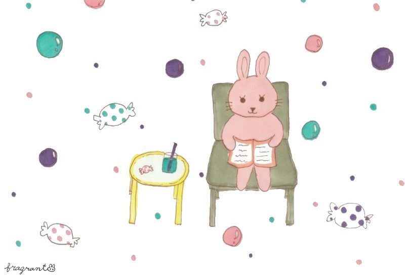うさぎの女の子「しゃるろっと」が、のんびり読書しているイラストです。