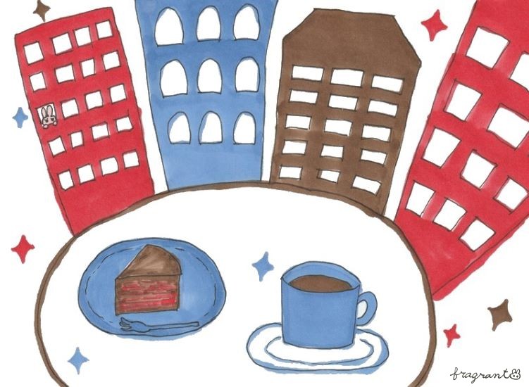 カフェをイメージした、コーヒーとケーキのイラストです。